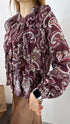 Camicia in fantasia paisley con rouge sul davanti. Tessuto naturale, due taglie: 40-42/44-46.