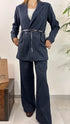Pantalone palazzo con pence. Due taglie con ottima vestibilità, 40/44-44/48. Il dettaglio lurex da grande luminosità.