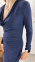 Abito elasticizzato in due taglie con ampio scollo e arricciatura sul lato.