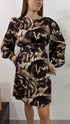 Abito in viscosa al ginocchio con fascia in vita removibile. Manica a sbuffo. Taglia unica.