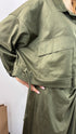 Giacca in tessuto scamosciato con arricciatura e coulisse sul fondo. Tasche frontali. Taglia unica con spalla scesa.