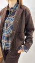 Bomberino in velluto fiammato con tasche aperte, automatici e arricciatura sul fondo. Due taglie: 40/44-44/46.