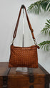 Borsa a busta in nappa lavorata ad intreccio medio largo su di un lato e liscio con tasca chiusa sull'altro. Chiusura con zip. Internamente tasca con zip su un lato.