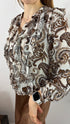 Camicia in fantasia paisley con rouge sul davanti. Tessuto naturale, due taglie: 40-42/44-46.
