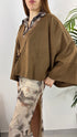 Giacca spalla scesa incrociata in tessuto scamosciato. Veste da una 40 ad una 46.