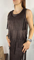 Canotta sfrangiata corta in tessuto scamosciato. Taglia unica, veste 38/42.