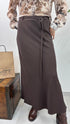 Gonna in tessuto scivolato con elastico in vita in due taglie. Cinturina in tessuto tono su tono. Lucia indossa la taglia piccola.