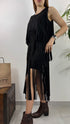 Gonna sfrangiata in tessuto scamosciato. Taglia unica con lampo laterale. Veste 38/44