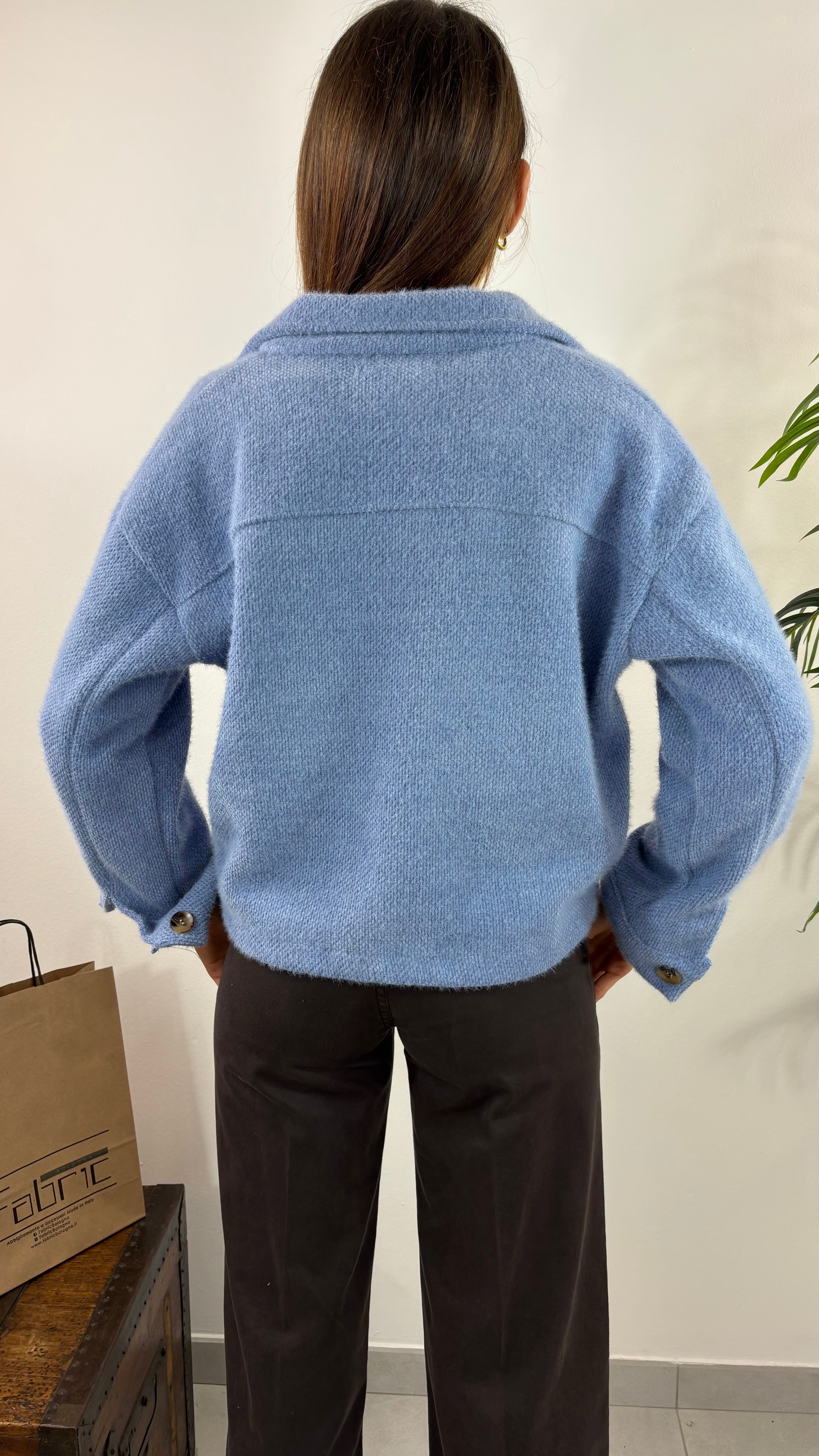 Giacca sfoderata cortina in tessuto morbidissimo e doppia tasca sul petto. In taglia unica, 38-44.