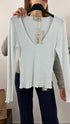 Maglia cannettata a manica lunga e scollo a V in taglia unica. Veste 38-46, asciutta.