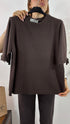 Maglioncino per la mezza stagione portato a pelle. Manica ampia a tre quarti con fiocco. Taglia unica, veste fino alla 46.