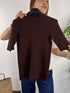 Maglia scollo mock neck, tessuto a costine elasticizzato con manica corta.