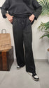 Pantalone in felpa con coulisse e dettaglio con riga sul davanti.