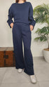 Morbido pantalone palazzo in felpa. Due taglie, ampia vestibilità.