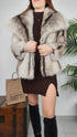 Eco pelliccia con ampio rever. Fantasia striata. Taglia unica. Ottima vestibilità.